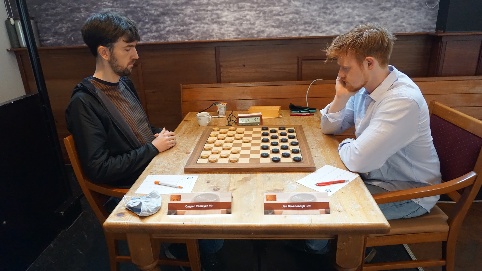 Remeijer-Groenendijk; reeds op de 16de zet verraste de zwartspeler (Groenendijk) zijn opponent, Remeijer reageerde daar vervolgens niet goed op en dat kostte hem een schijf. Wat te doen? Remeijer kon proberen om door te knokken, maar hij kon ook direct opgeven; vanmiddag was er immers nog een ronde (tegen Van Berkel) en dan kon hij daar tenminste fris en fruitig aan beginnen! Remeijer koos voor het eerste en hield het vol tot de 41ste zet; 0-2.